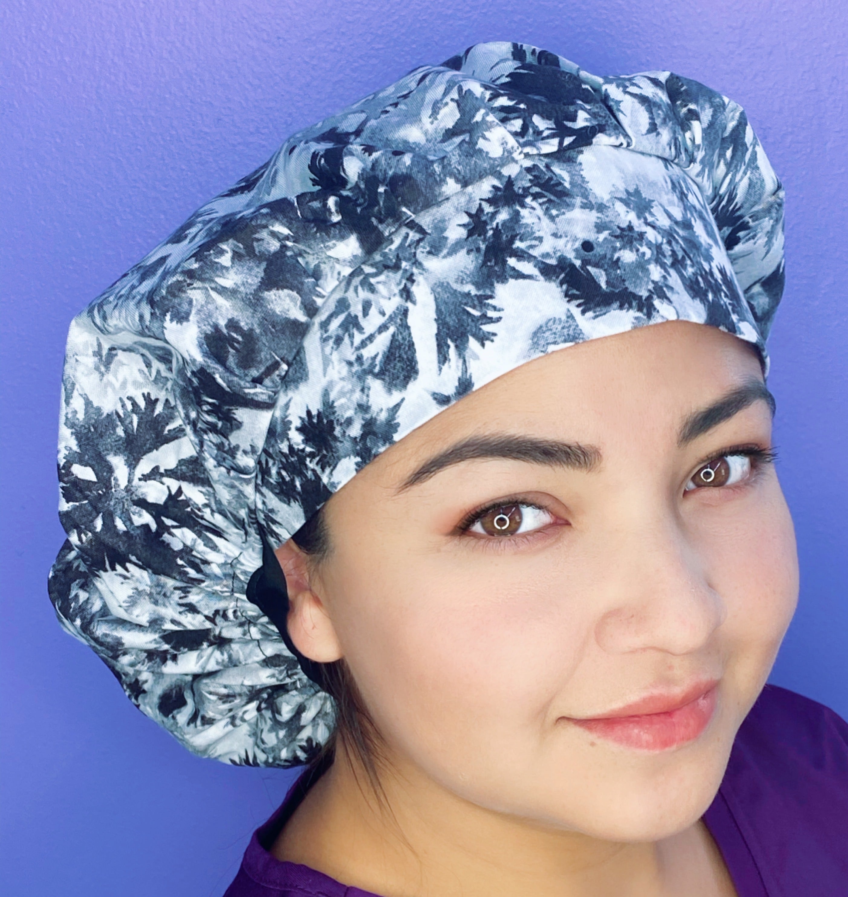 Our bouffant scrub hats feature both an adjustable cord stop and a little “belt loop” at the base for the ties to go through, you may choose to wear it as a regular bouffant or tie it in the back to make it a new "ponytail" like look. The headband lays flat and comfortably against your forehead, while the pleating creates a stylish and fun bouffant look, great for long or short hair to wear all day long.