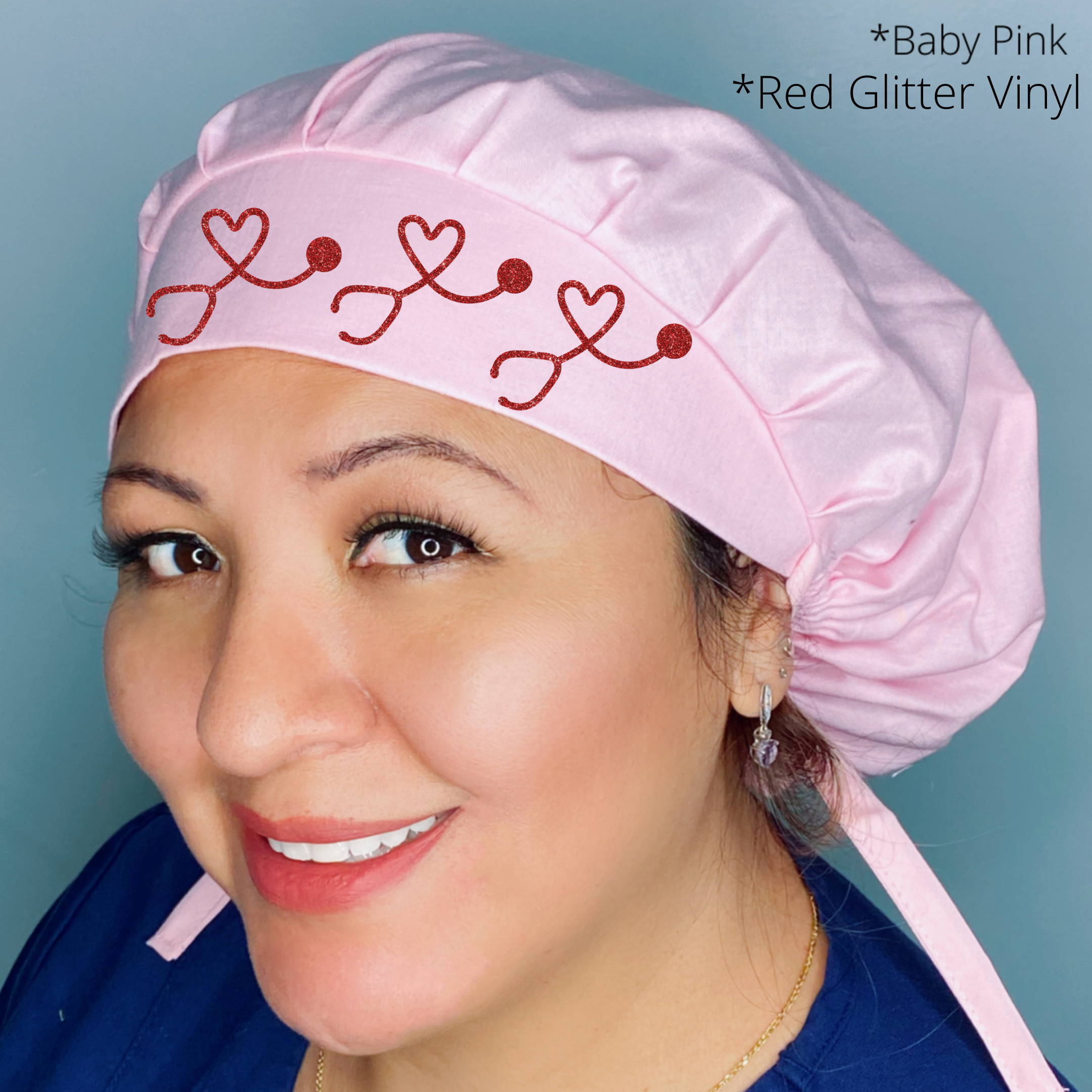 This Bouffant can be personalized with heat press vinyl for a unique one of a kind look. If personalization is chosen as a finish please at the time of purchase specify the following: