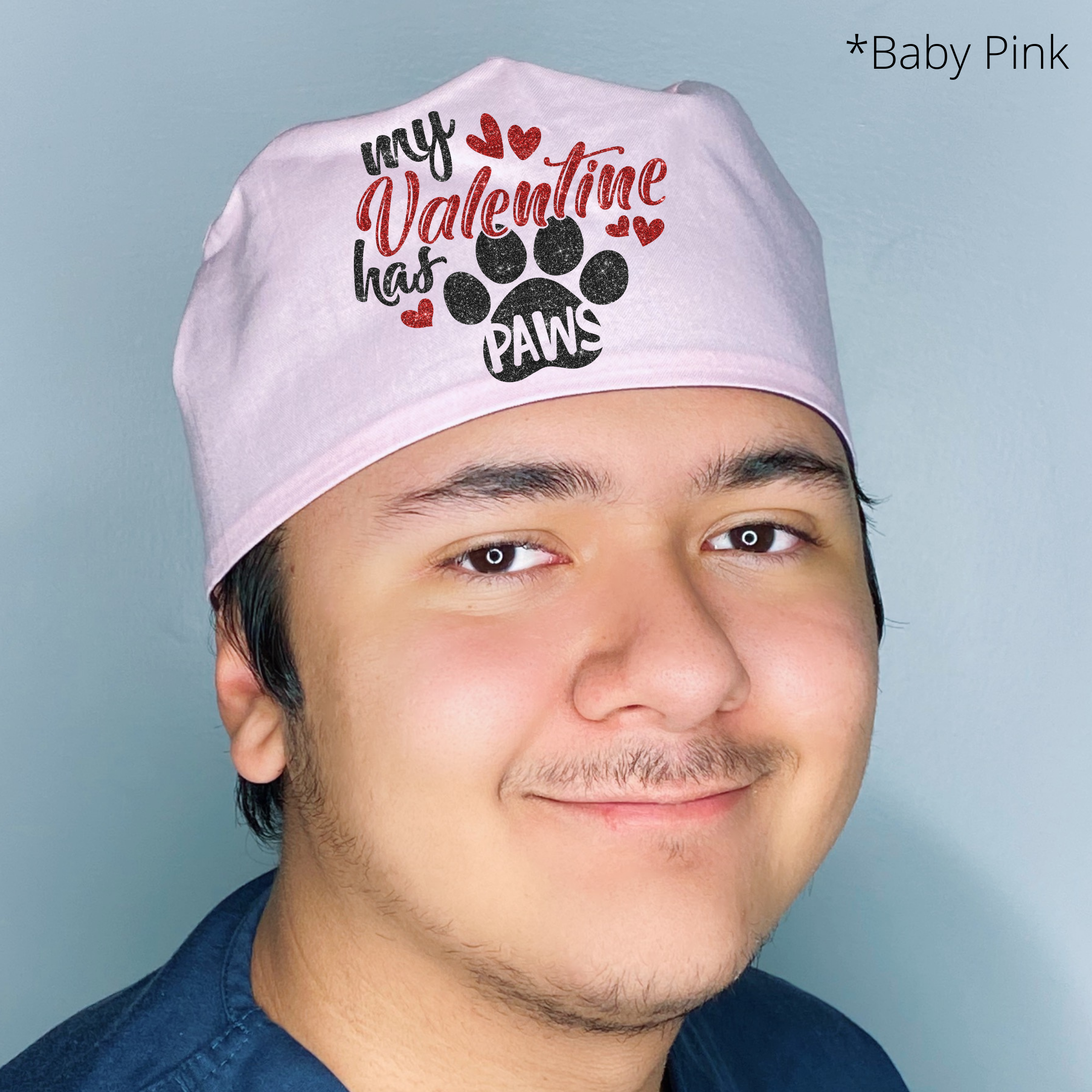 My Valentine Has Paws Dog Lover GLITTER Valentine's Day Themed Custom Solid Color Unisex Scrub Cap